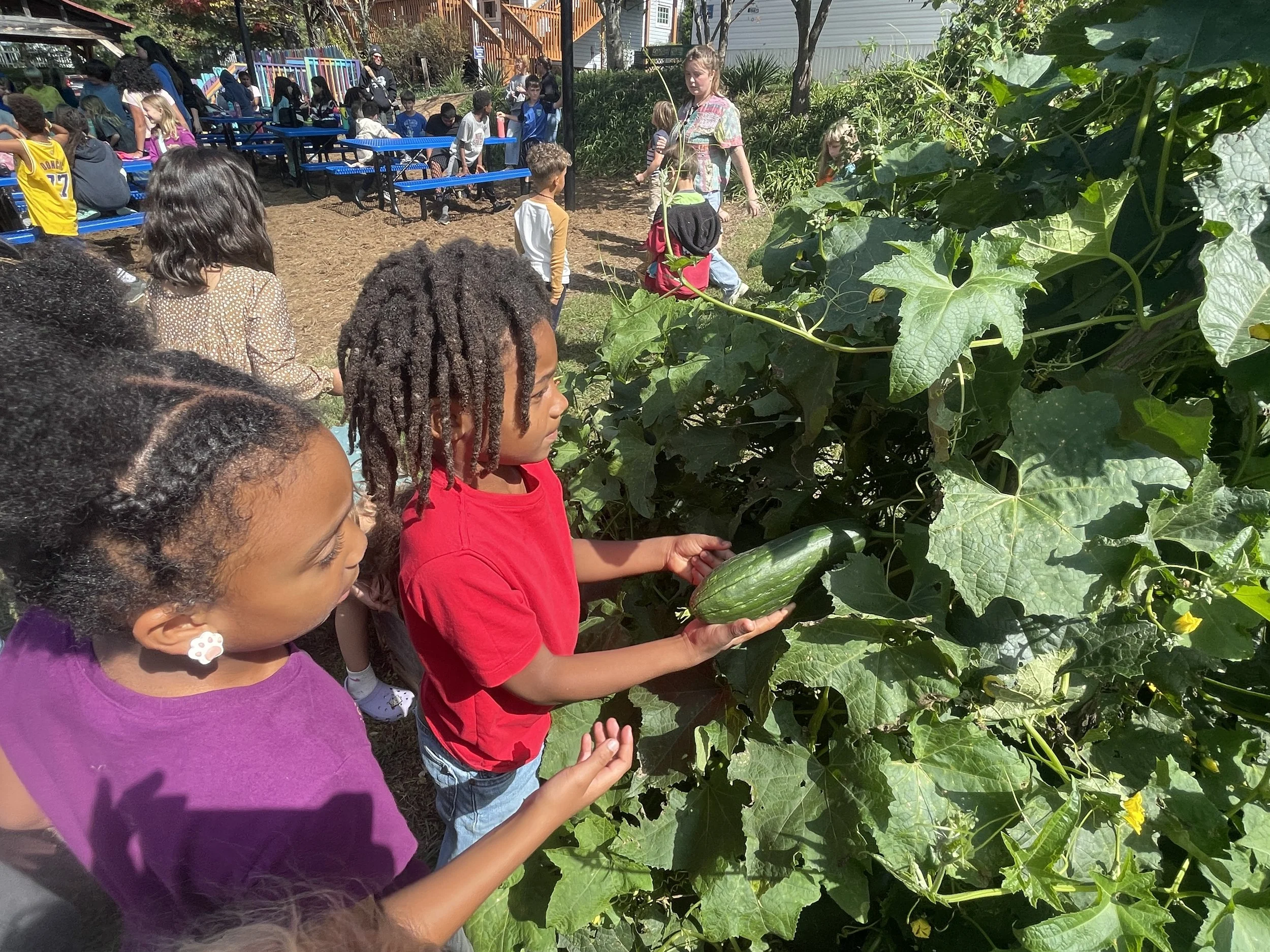The Francine Delany School Garden consists of garden beds growing annual veggies and herbs throughout the school campus. Over the past several years, parent volunteers have helped us significantly expand our gardens, adding a central area of several raised beds in a central part of campus. Students are engaged in all parts of the food cycle from planting seeds to tending seedlings to harvesting and eating. Produce grown in the garden is used in FEAST classes and sent home with students. We host workdays throughout the year so the community can help us with our bigger projects.